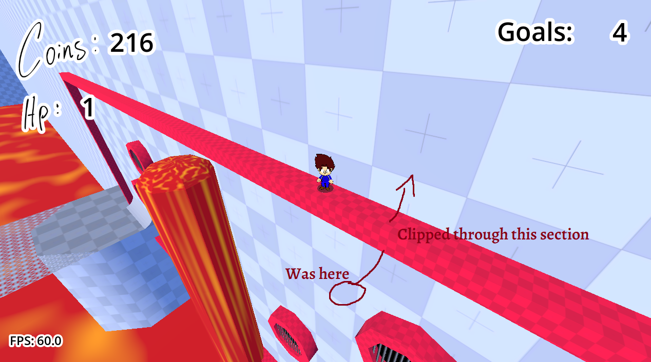- When dashing mid air, the collision on some wall failed and I glitched through the scenario. Ended up here, and I was stuck so I had to restart the level.
