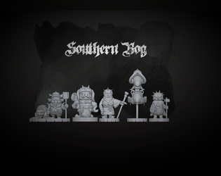 This is a low model count miniatures skirmish game set in a dark and whimsical folkloric world, it can be found here https://tipigames.itch.io/kingdoms-of-bog
