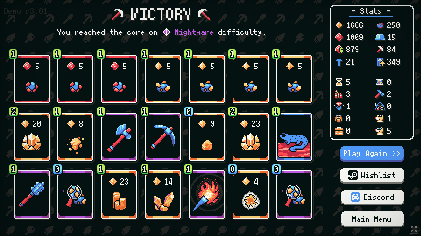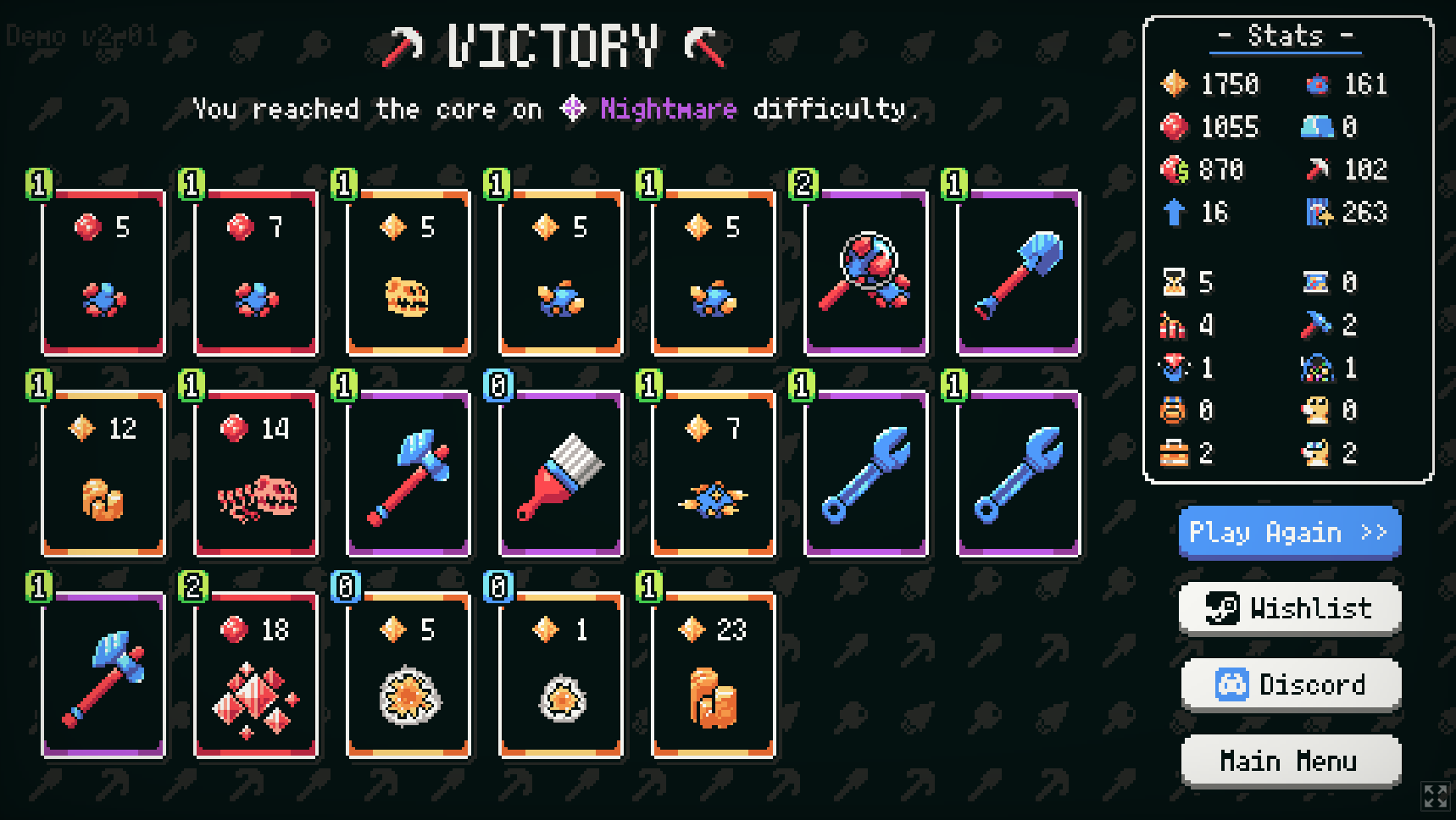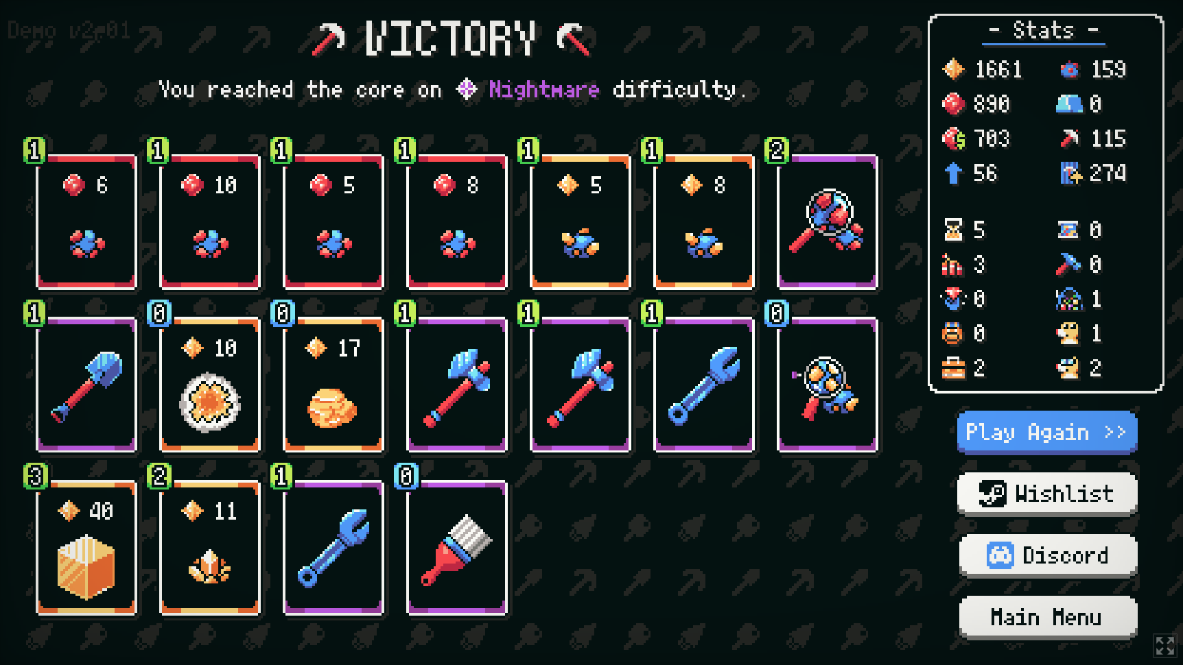 e.g. won like this multple times - after wrenches, axes still dominate the game due to balancing issues (better to be able to shoot through the deck fast, since the game doesnt let you keep cards in hand and decide when to play them. This is the core balancing problem: player has very little control, so things that make up for the lack of control win much more often)