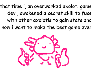 that time i, an overworked axolotl game dev, awakened a secret skill to fuse with other axolotls to gain stats and now i jam comments · Replied to yskang in that time i, an overworked axolotl game dev, awakened a secret skill to fuse with other axolotls to gain stats and now i jam comments