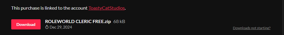 I bought the bundle, and it comes only with the Free items? It’s missing a lot of the tiles. Can I get a refund please? You would think I would get the ROLEWORLD CLERIC.zip But instead I get ROLEWORLD CLERIC FREE.zip….