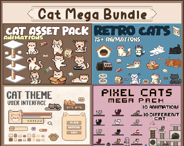 I am happy to finally share the Pixel Cat Mega Pack, a collection that brings together all my cat-related pixel assets into one complete and easy-to-use pack.