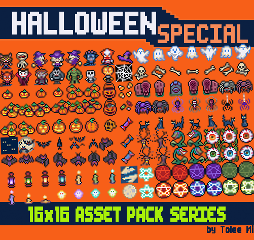 500+ high-quality handmade assets (16x16) for top-down games, in individual transparent PNG files and folders (ZIP format)
