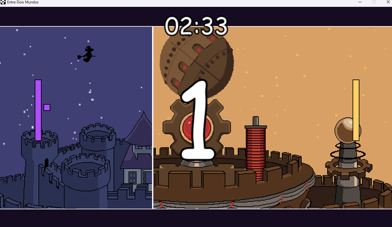 achei legalzin, o game feel no comecinho do menu ficou bem bonitinho e os efeitos sonoros tao legais, acho q talvez o sprite do player nao combinou mto com o cenario, por causa das cores e do tamanho dos pixeis, e podia ter alguma instrucaozinha de como o jogo funciona, mesmo q fosse so escrever os controles na pagina do itch, pq qnd eu apertei o control pra trocar de dimensao ele nao funcionou de primeira ent eu achei q podia ser otro botao, ate eu tentar o control dnv e dar certo