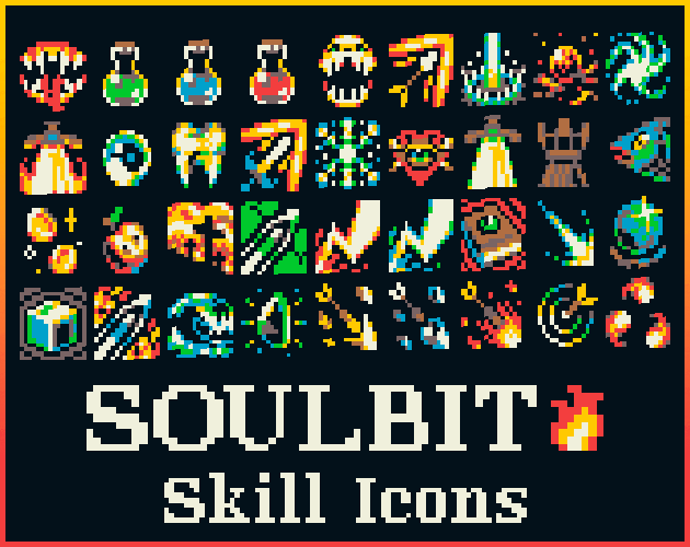 I've been thinking for a long time about what could be my bundle, and I thought it would be nice to continue my first bundle and complete it in an asset pack for an RPG/Roguelike game which I decided to call Soulbit🔥