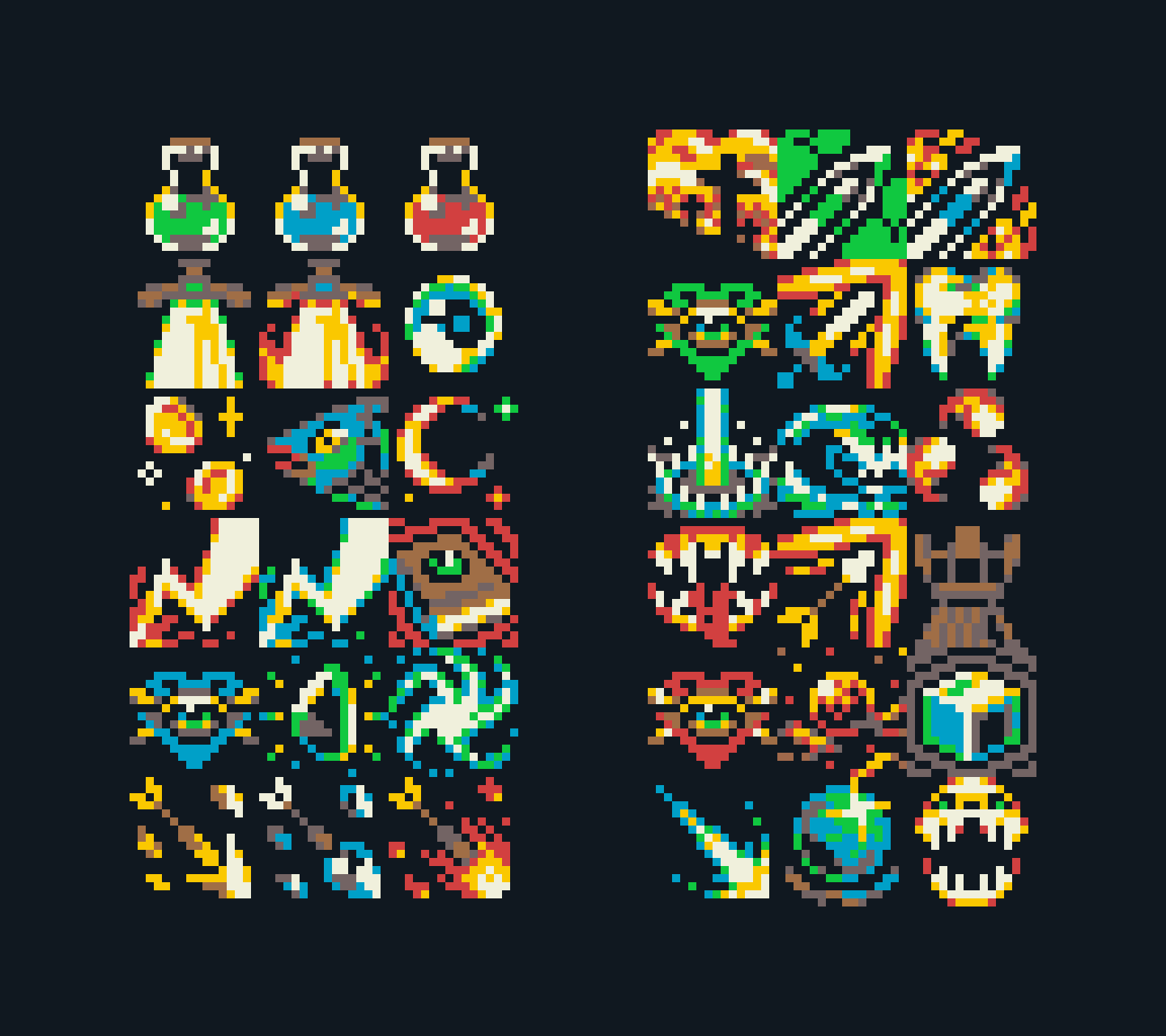 In June 2018 I published my first asset pack here on itchio, 70 items 16x16 for a zelda type game with the matriax8c palette.