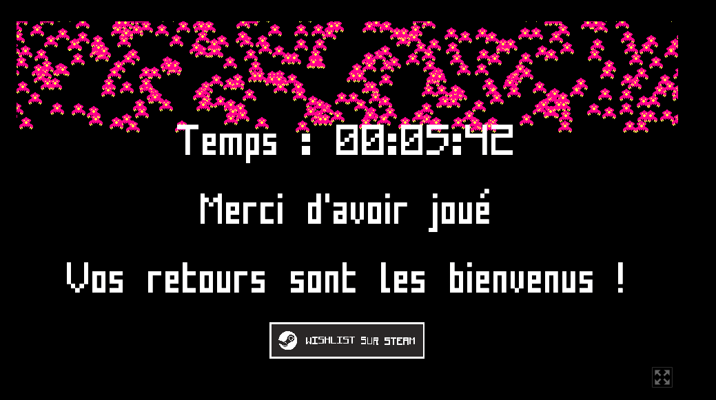 Encore une fois j'ai grandement apprecié jouer a votre jeu, j'attend sa sortie sur steam.