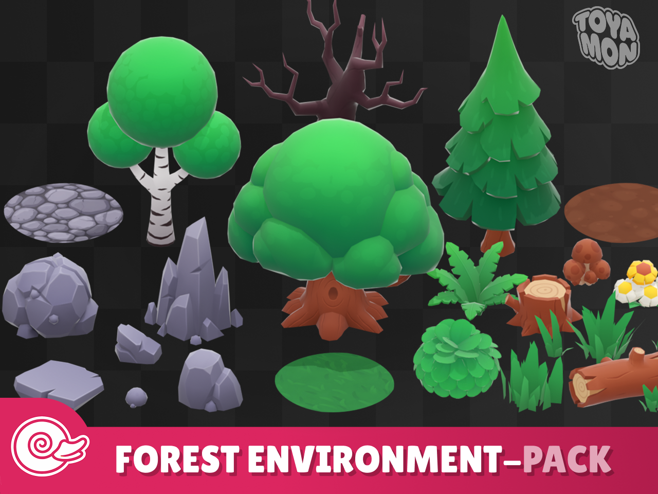 All asset packs feature multiple 3d formats and handpainted textures, they can be found on my page: https://toyamonstudio.itch.io/