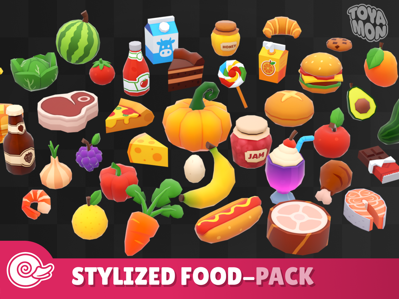 - Stylized Food https://toyamonstudio.itch.io/stylized-food-pack