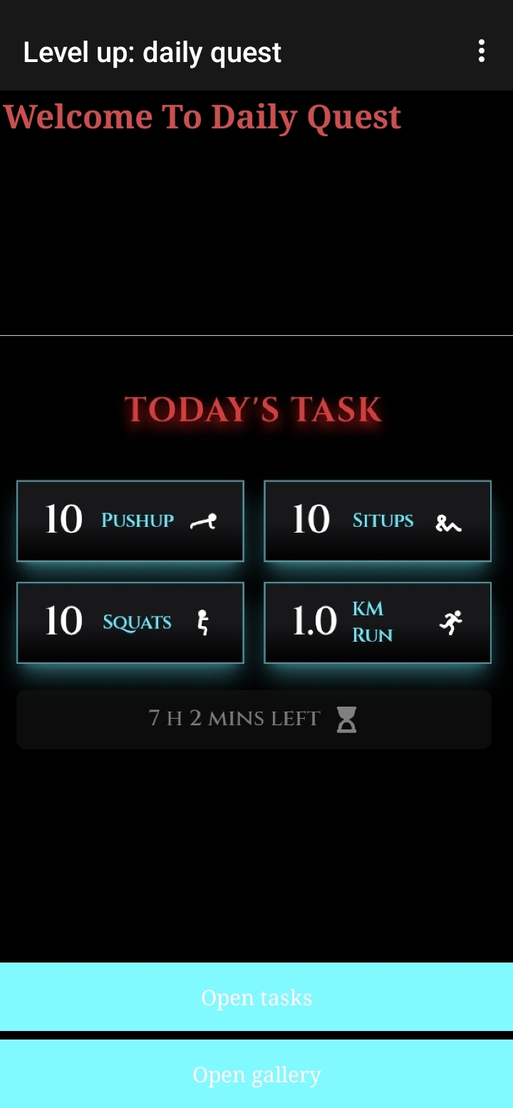 I just released DailyQuest on itch.io! Inspired by sololeveling. It’s a casual daily challenge game where you complete quests every day to level up and unlock cool rewards just like sung jinwo. The app is like a sung jinwo system it keeps you on track helps you to keep healthy.