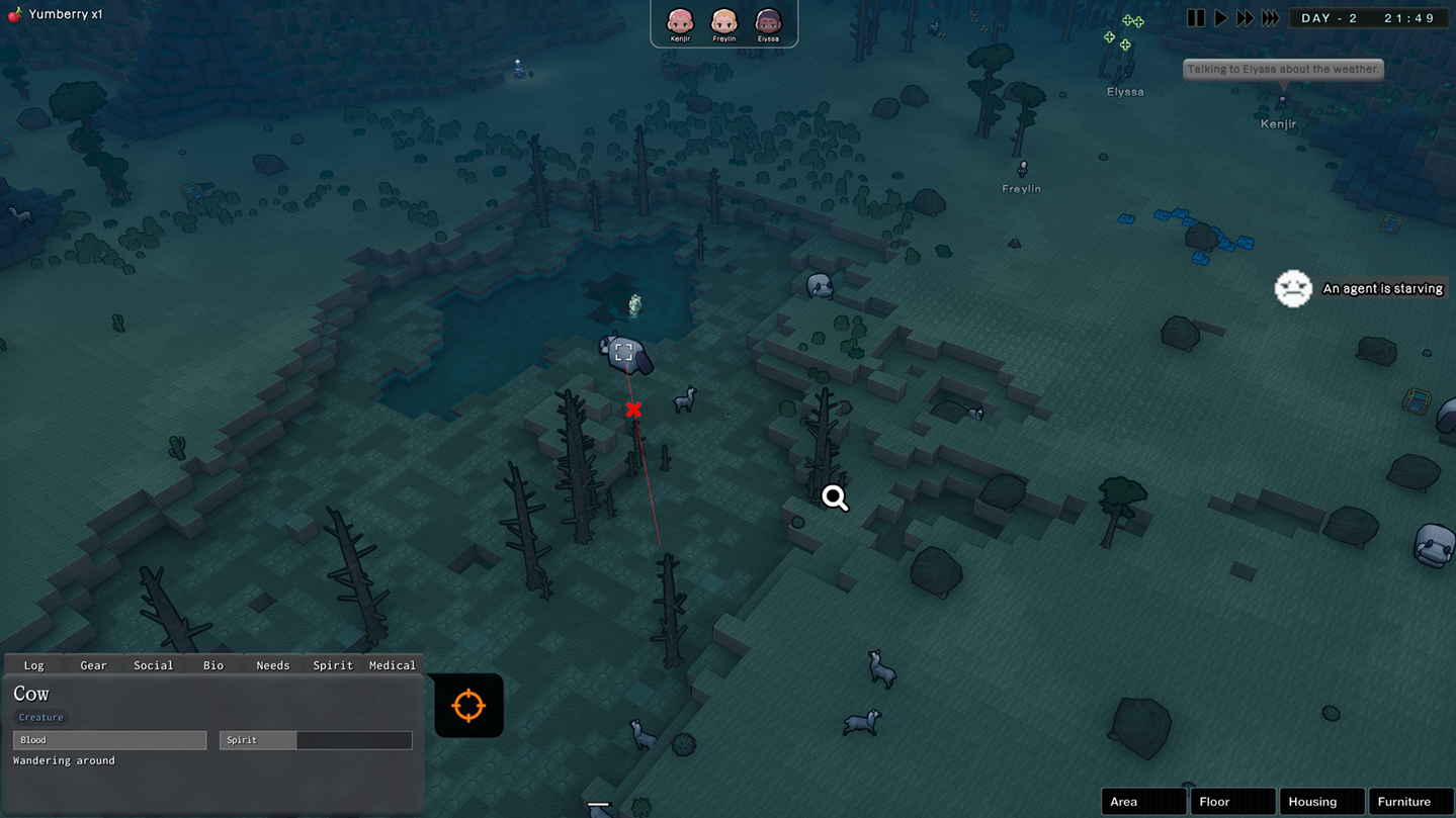 A colonist hunted an alpaca, which seemed to be a big undertaking. The chad alpaca just went to sleep multiple times after taking 5 bullets and still being shot at. The hunter wasn't very good. His first shots were pretty accurate, but somehow alpacas are harder to hit when sleeping. He shot around 30 times and didn't land one shot.