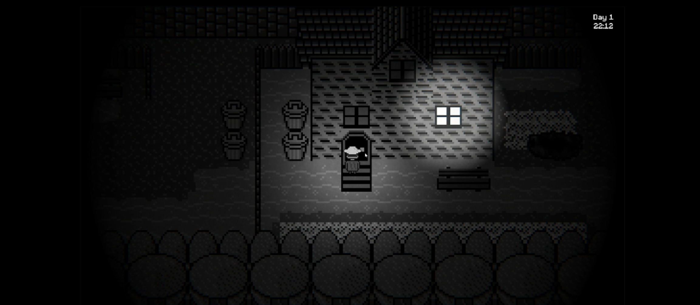 I realize that I should have added a screenshot showing that the black rooftops are just regular house tiles. I agree with you that without the full-screen/higher resolution that had been planned for this + some shader things, it's that much harder to pick out everything in the scene. Would have loved to have had the time to build out a proper tutorial, and the UI on the right is entirely unimplemented, which is more of a scope issue. Lessons learnt on exporting far sooner than we managed to this time.