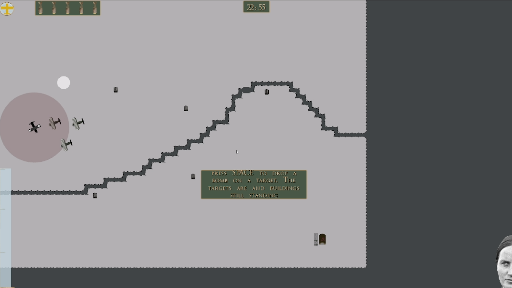 Very cool concept and well-made! I had a hard time distinguishing which plane was the “main” one that I should use to target, but overall, once I got the hang of the tutorial, moving to the main game was daunting and interesting! I found the controls a bit confusing at first, but I got there eventually. I’m not sure if the UI got cut or not, but this side-eye was amazing to have on the side! Made me chuckle here and there.