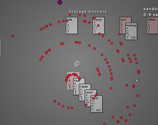 So something like, `Burst-> Twist -> Link` would shoot a burst of projectiles that have a slight spiral to them, toward the player. Another nice property of the modifiers is that they stack. Most scale additively, and sometimes multiplicitively! For example multiple twists at level 3 will create a really tight circle around the target. I say `target` in this case, because homing and link exists, and its possible to get things orbiting around the player or enemy.