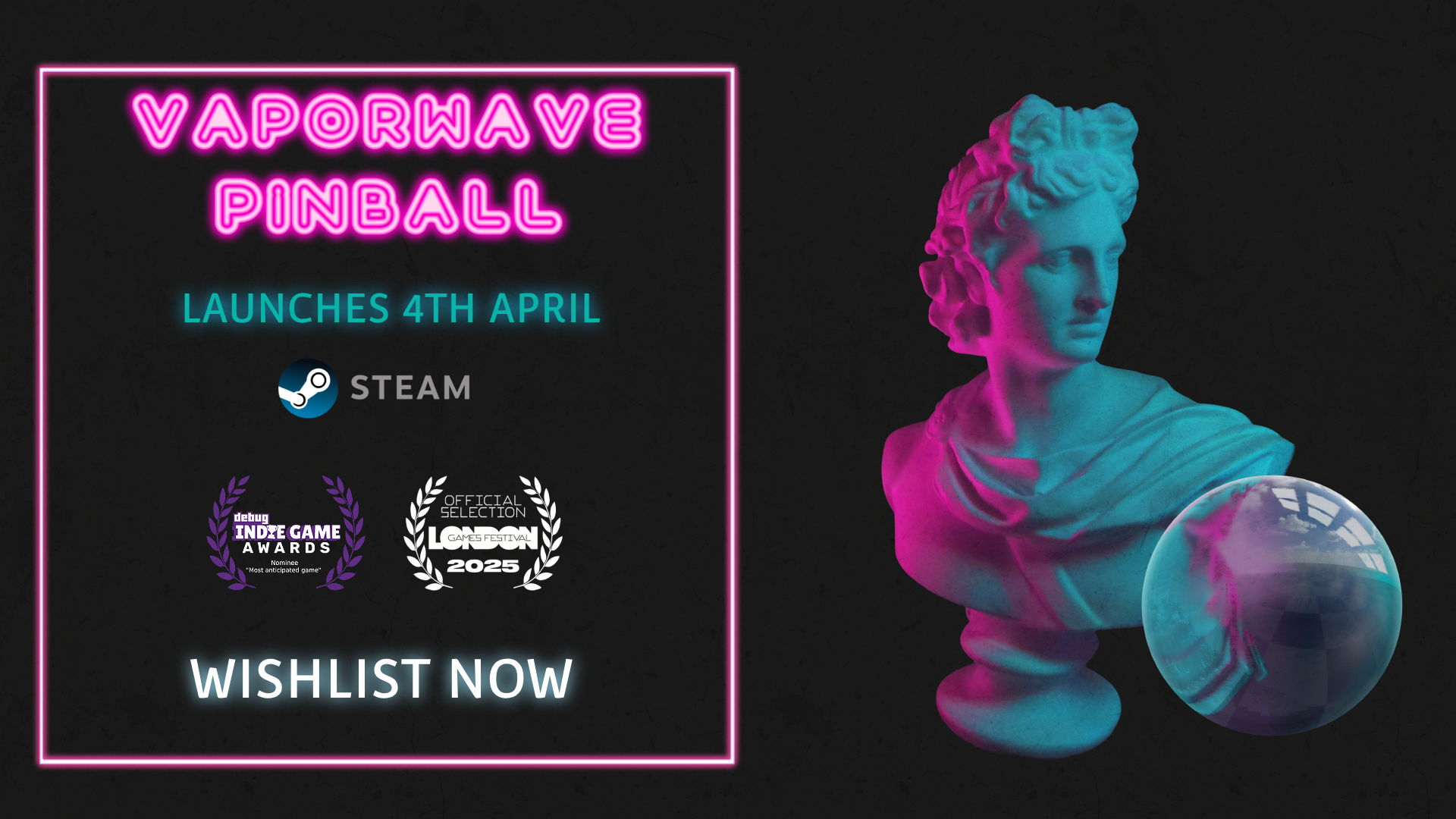 I'm SUPER excited to announce that VAPORWAVE PINBALL launches for Steam on APRIL 4th 2025...📣