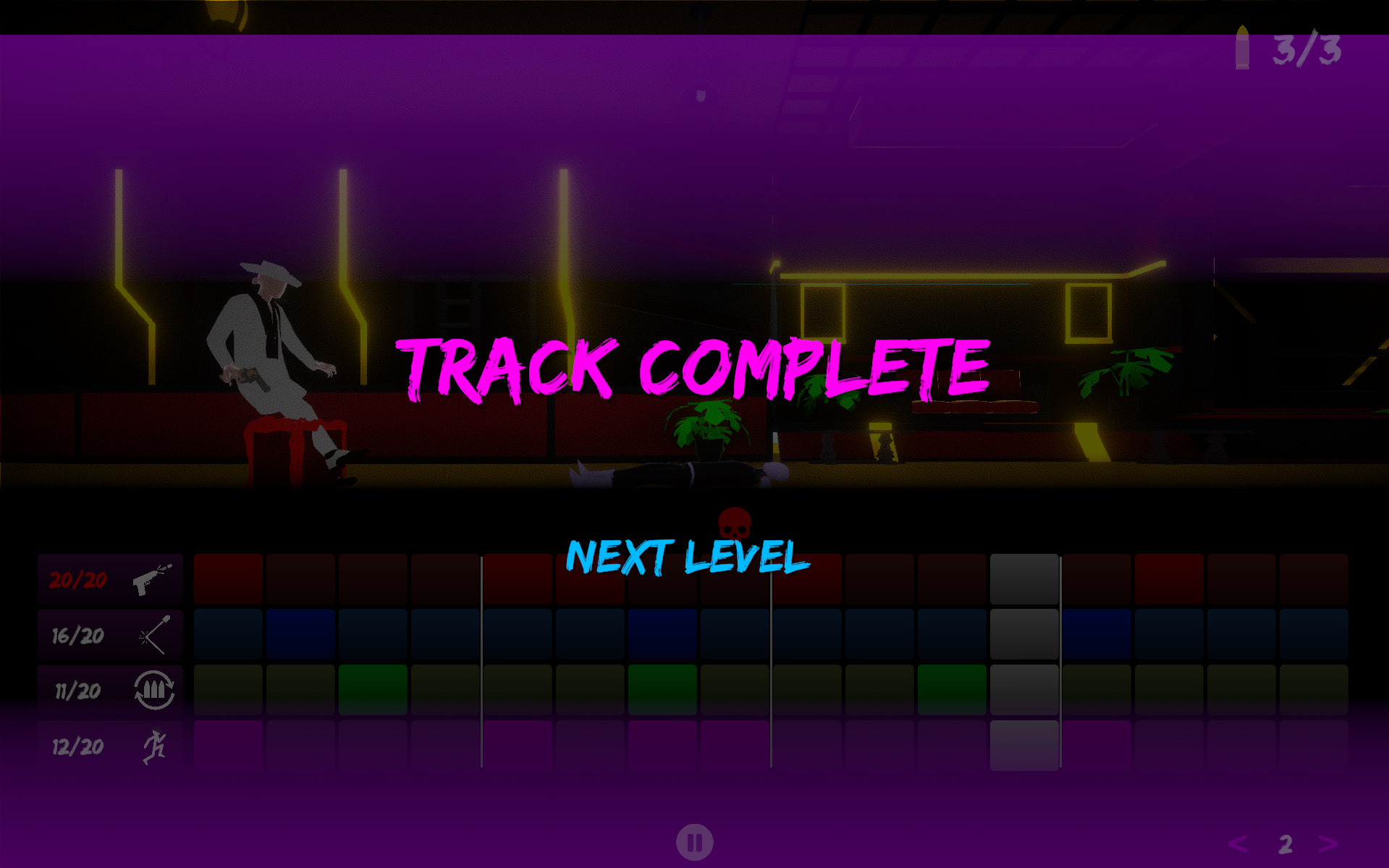 I have points to improve. I finished the game and I still don't know how it works, and many times why I was dying, so I just randomly assigned most of the times. And there is a bug (probably because of which I managed to complete ;)) where the player gets stuck at the blocks and then the tracks goes on and you finish the level.