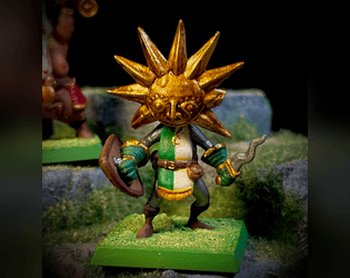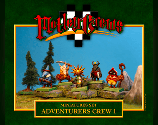 Five printable fantasy miniatures, intended for use in the Motley Crews tabletop game