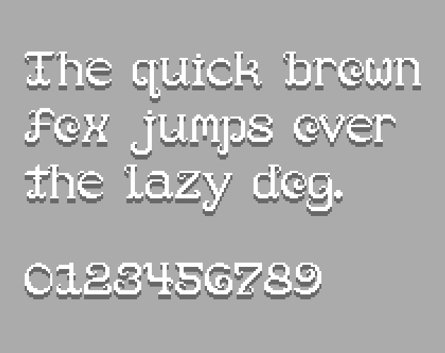 Just overhauled another one of my fonts. Royal Decree is a font I designed my first year of making pixel fonts. It was supposed to be regal, but ended up equally as zany. I kept the style for the overhaul, and improved things like letter sizing and language support!
