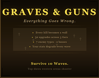 Every kill reshapes the arena. Survive 10 waves as everything goes wrong.