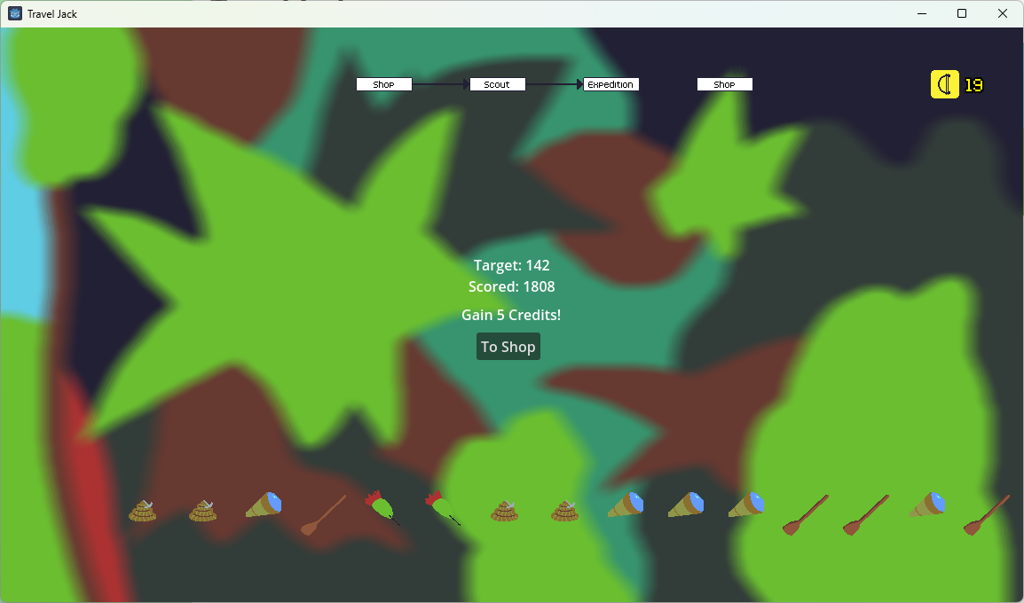 Got sucked into this far more than I expected to at first (I like seeing big number go up I guess). The graphics are very smooth; the transitions and effects are all on point. After a couple of runs and tinkering about, I got a strat down that could go really far. Two ropes (or lil poops as I called them, endearingly), a spyglass, and some flowers and then just hunt for the 9 deck. Guaranteed a 16 draw after spying to ensure no mountain. I don't know what expedition I ended on but I think it could have gone forever. Really nice execution on the genre, the picking expeditions is a smart twist.