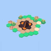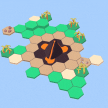 Volcano, Please! is a simplified RTS game where the map is randomly expanded by the volcano which shoots out tiles in random directions.