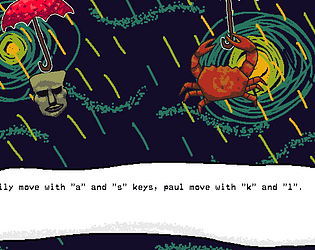 Challenge your friend to work together towards a stable relationship, as a crab and a moai head.
