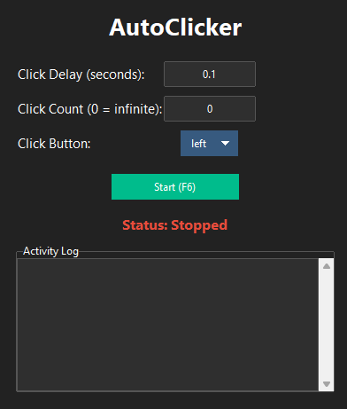 AutoClicker is a lightweight, customizable mouse automation tool for Windows. With built-in hotkeys (F6/F7), adjustable delay and count, support for left/right/middle buttons, and light/dark theme switching — it’s the perfect utility for gamers, developers, and testers who need reliable, effortless clicking.