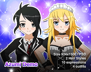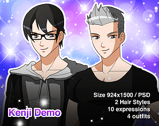 Female and male body. With 5 body colors, hair and expression variations. Perfect for visual novels, dating sims, etc.