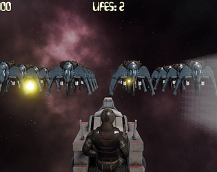 Really nice take on the game cover, I like the addition of tilting the turret. The controls work really well and the music - both title music and in-game music - suits the game style. Gfx with the aliens looking like the cover is a nice touch as well. Would have loved a bit faster action, but it maybe comes after some more waves? All in all a great work!