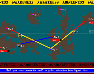 - je trouve la représentation du monde un peu difficile à lire, on ne sait pas trop ce qui est debout ou couché et ce qui est dessus ou dessous. Un exemple d'amélioration par rapport à ça est de faire une couleur de sol différente de la couleur des murs dans le bâtiment.