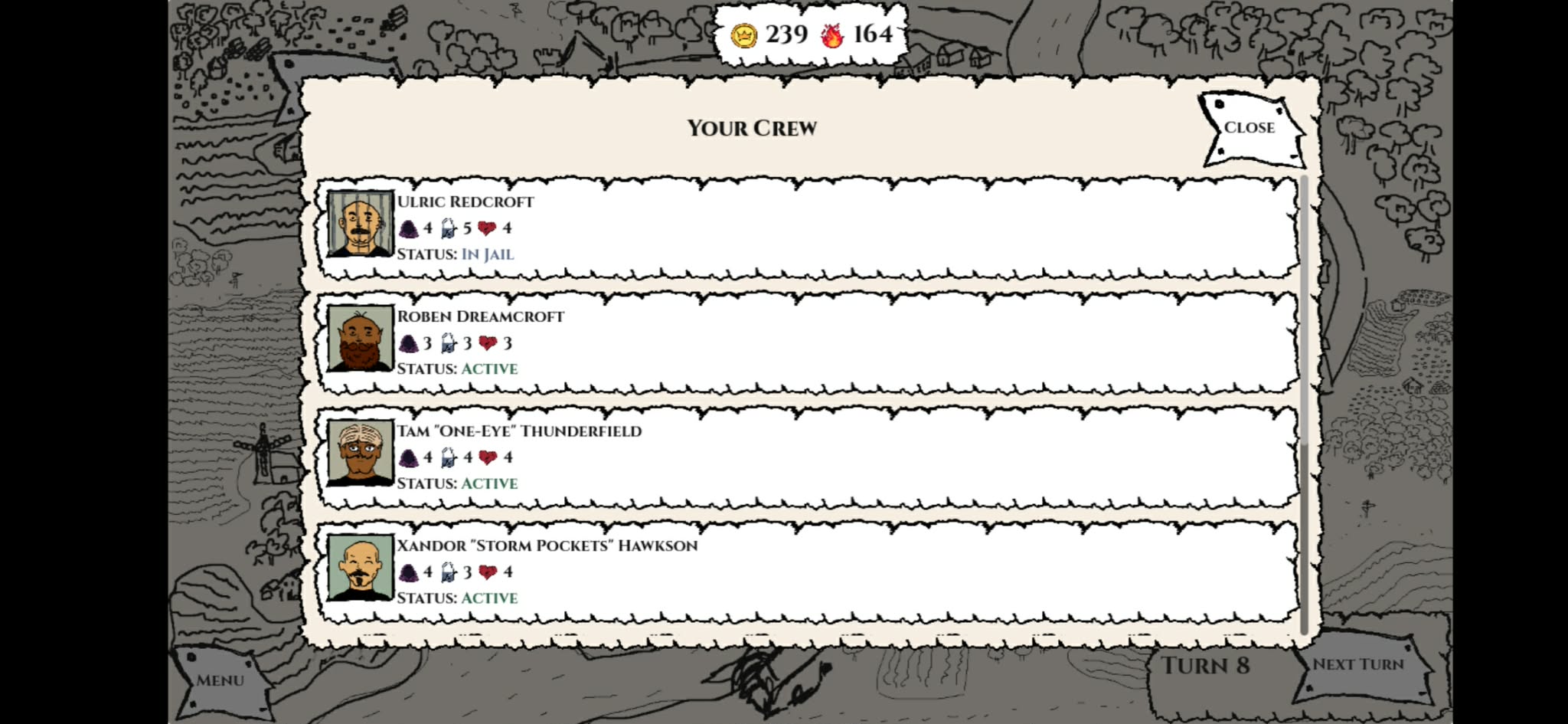 Also, poor Devlin, he was by far my best guy, but he spent more time in jail than on missions.
