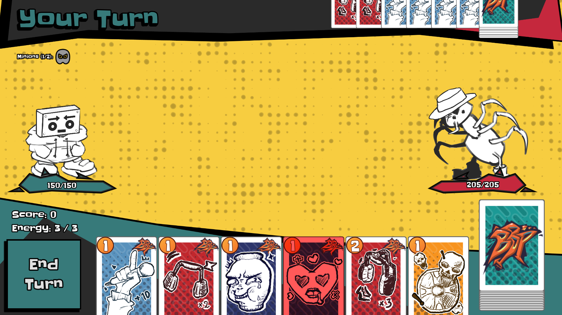 Very stylish game, the visuals and the music fit very well together. There were also a surprising number of features you could fit into it, including the minions (loved that). For the most parts, the controls also had a nice and easy flow, but the card placement felt a bit weird, because it seemed to always place the next card into the middle, which was unintuitive when I was working on a combo.