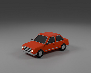 A 3D model of a low-poly style red sedan car, optimized and ready to use in your next game.
