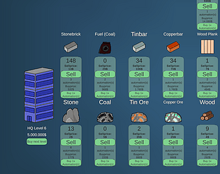 Click-Mine-Sell starts off as a simple clicker game, where you repeatedly click on a resource icon to get more and more from that resource. But to progress you need to sell your goods, prices changes regularly so keep an eye on it and sell it at high value to achieve maximum profit and effectively progress faster. Unlock more and more resources and transition from clicking manually to automations, which click for you. Later unlock autosellers, that automatically sell your goods. Either they sell constantly or you set the price you want to sell the goods at. Also, higher tier resources need lower tier resources to be produced, so to keep it efficient have enough automations and resources of the lower tier goods too! With around 30 different resources and a simple goal to become a billionaire, this game will take around 2 hours to finish