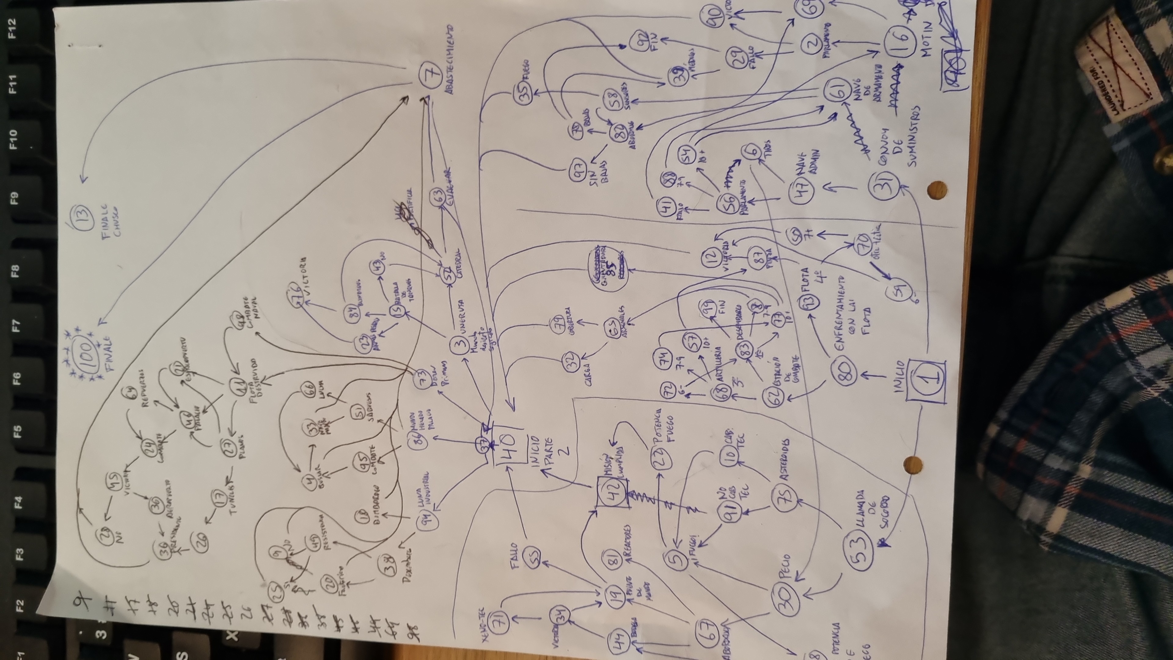 Las cien secciones me parecieron pocas al principio pero, al final me salieron justas. Descubrí la importancia de las secciones "de paso" (las que sólo tienen una salida) porque ayudan a controlar la velocidad de la historia, unificar detalles narrativos y porque no puedes estar tomando decisiones constantemente sin que se descontrole todo.