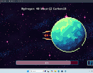 Ok I have the updated veiwport settings at https://wgnellis.itch.io/spudnuk01 as far as gameplay, follow the compass to planets and land on them, (with the thruster pointing at the planet, not just running into it) to get resources. also read the tutorial that is ingame