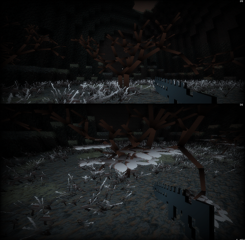 -Shadow distance fading is too strong, moving south from spawn will make the fan shadow above disappear before your eyes.