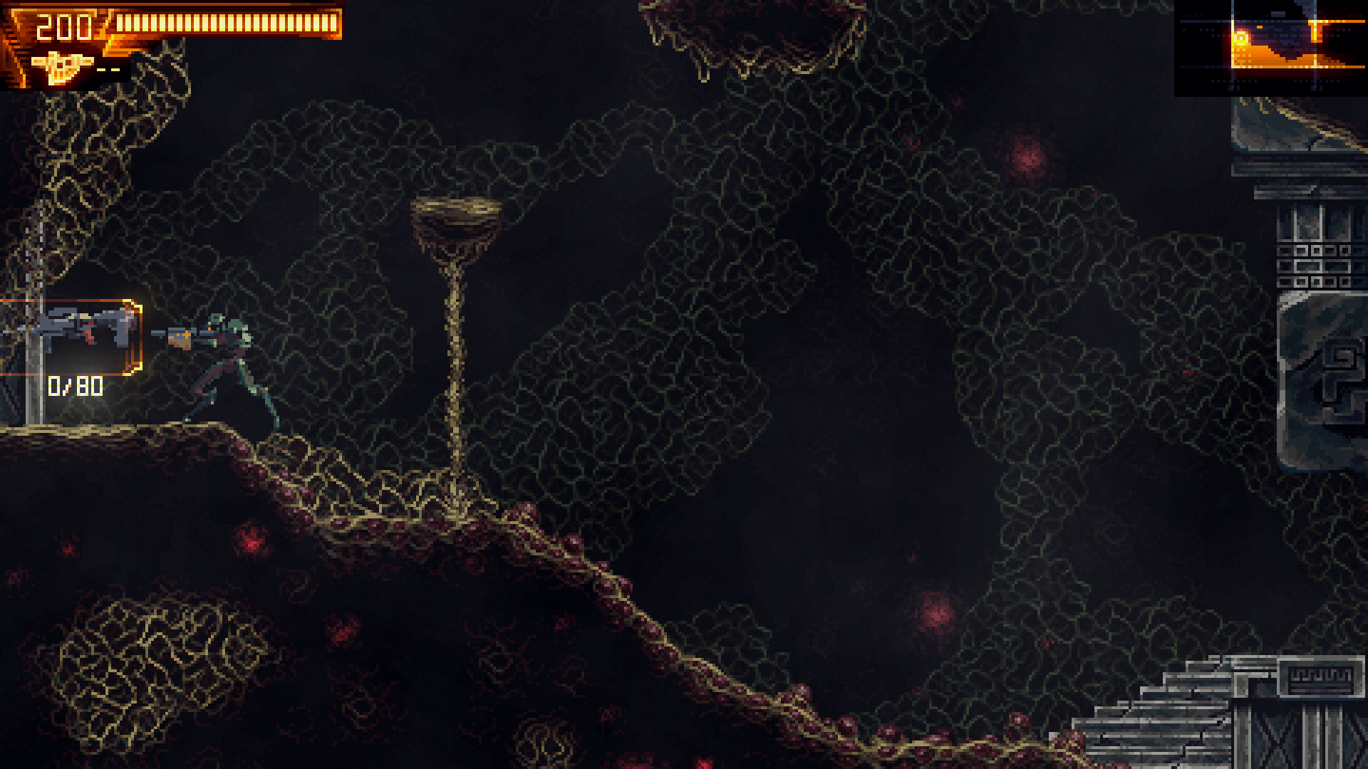 -Got confused after getting the weapon, feels very gamey(in a not so good way) to make me attack a switch through a ceiling to open the way.