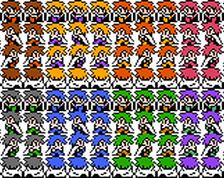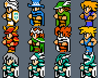They are 48x64, but I do see that the spritesheet sizes (overall) is wrong actually, its 576x506 when its supposed to be 576x512. I guess I did the math wrong. Its all made with RPG Maker MV/MZ in mind (I forgot to say that on this pack) but I can add smaller sizes too. Ngl, I was very impatient towards the end of this pack, I don't like making characters, or rather. I genuinely suck at any kind of animation, even just 3 frames xD