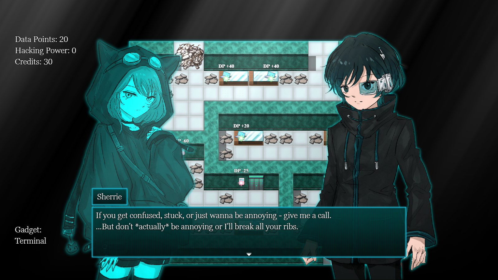 https://wingedfox.itch.io/cycle-shifter - Cycle Shifter is a post-post-dystopian adventure game set several centuries into the future, where a newbie hacker tries to make a living looting ancient facilities.