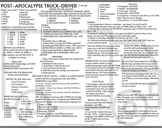 a solo one page rpg about driving a truck in apocalyptic wastelands