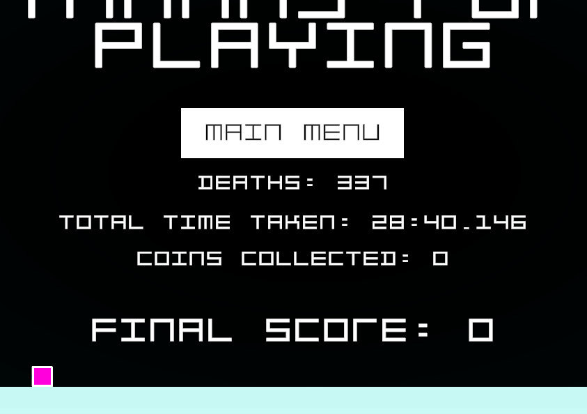 the box fall too fast. its really hard to place the corpse at the correct position. and most of the level i choose to get with the shortest path. and the other image shows that the player capable to fall out from the game frame. the way every corpse gone after player death makes the game more hard to beat.