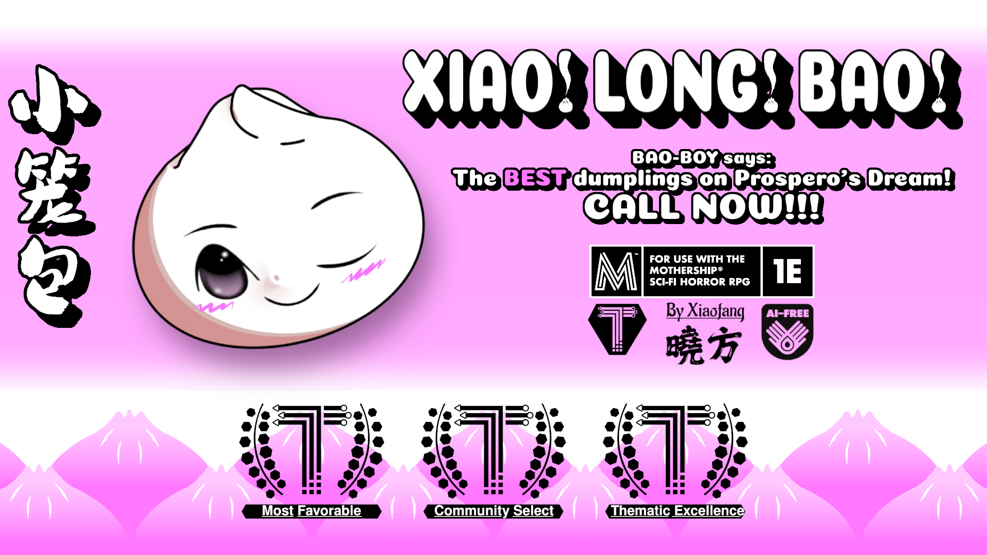 I'm proud to announce the official release of my dim-sum themed trifold adventure scenario, Xiao! Long! Bao! for the Mothership 1e TTRPG from Tuesday Knight Games!