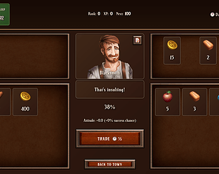You can check out https://yjonas83.itch.io/medieval-merchant-rpg (password: rpg), which is a more advanced take on the topic.