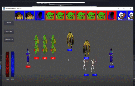 the vision is to make a working and balanced turn-based game where you place units, move and use their abilities, think Warhammer but more rule-bending abilities like in Magic The Gathering.