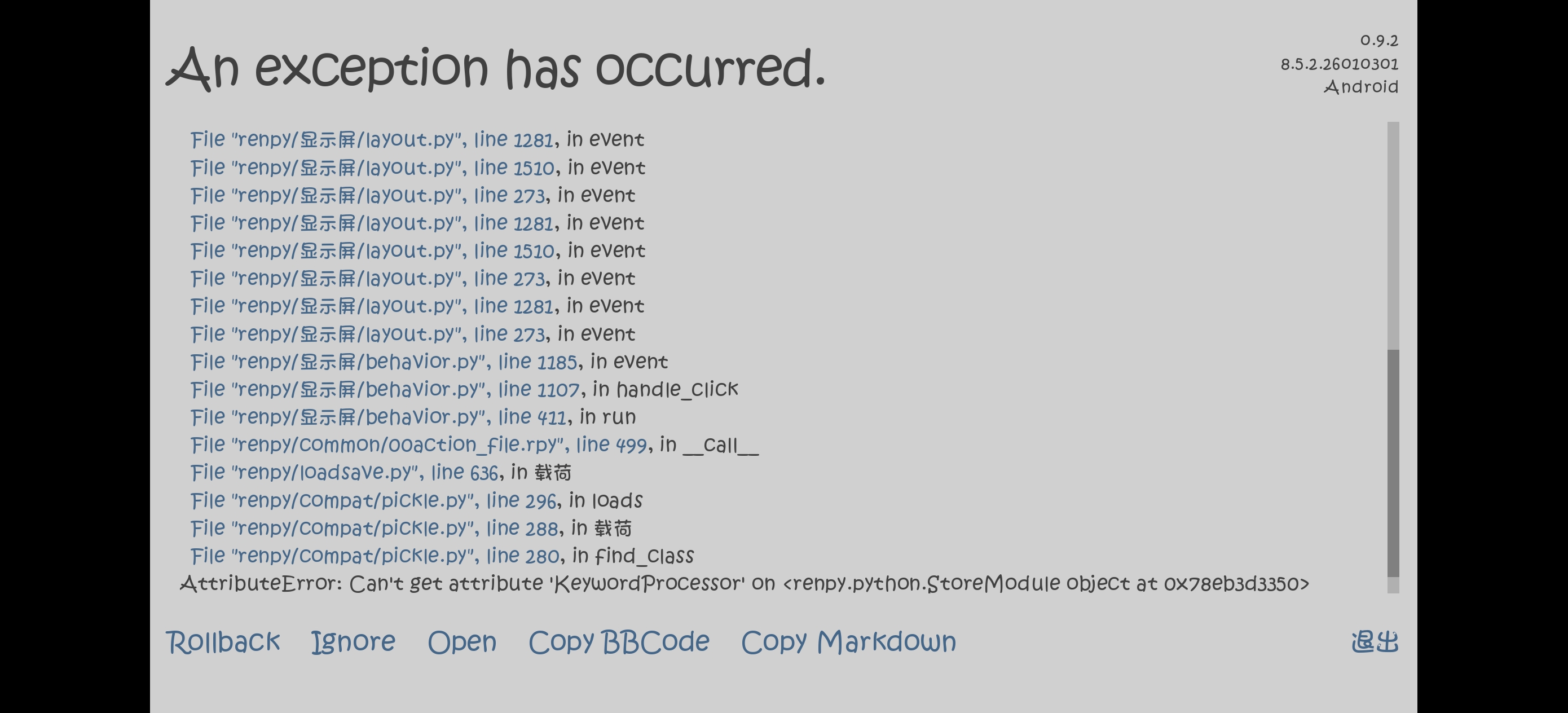 After I finished playing, I was bored and changed the text background box to transparent in the settings. Then my save file got bugged like this.