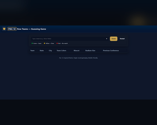 Yeah, originally I joined the jam as kind of a personal challenge to figure out how to use AWS for hosting, but I ran into some security issues and ended up just deploying on Render since I was more familiar with it. As for the server setup, I wanted to experiment with backend deployment instead of just making a standalone game mostly to get practice working with web hosting and timed interaction features. The PAC-12 theme came from our school’s situation since we recently lost teams and funding, and now schools like U of I are joining to fill the gaps, so I thought it’d be a fun and timely concept to build around. Honestly, it’s kind of a big deal for us since losing the old PAC-12 setup hit our athletics and student programs hard causing a lot of budgets to be cut, so this theme really connects to what’s happening on campus right now. I figured most people at WSU would get the reference right away since it’s been talked about so much so I’m surprised you didn’t recognize it.