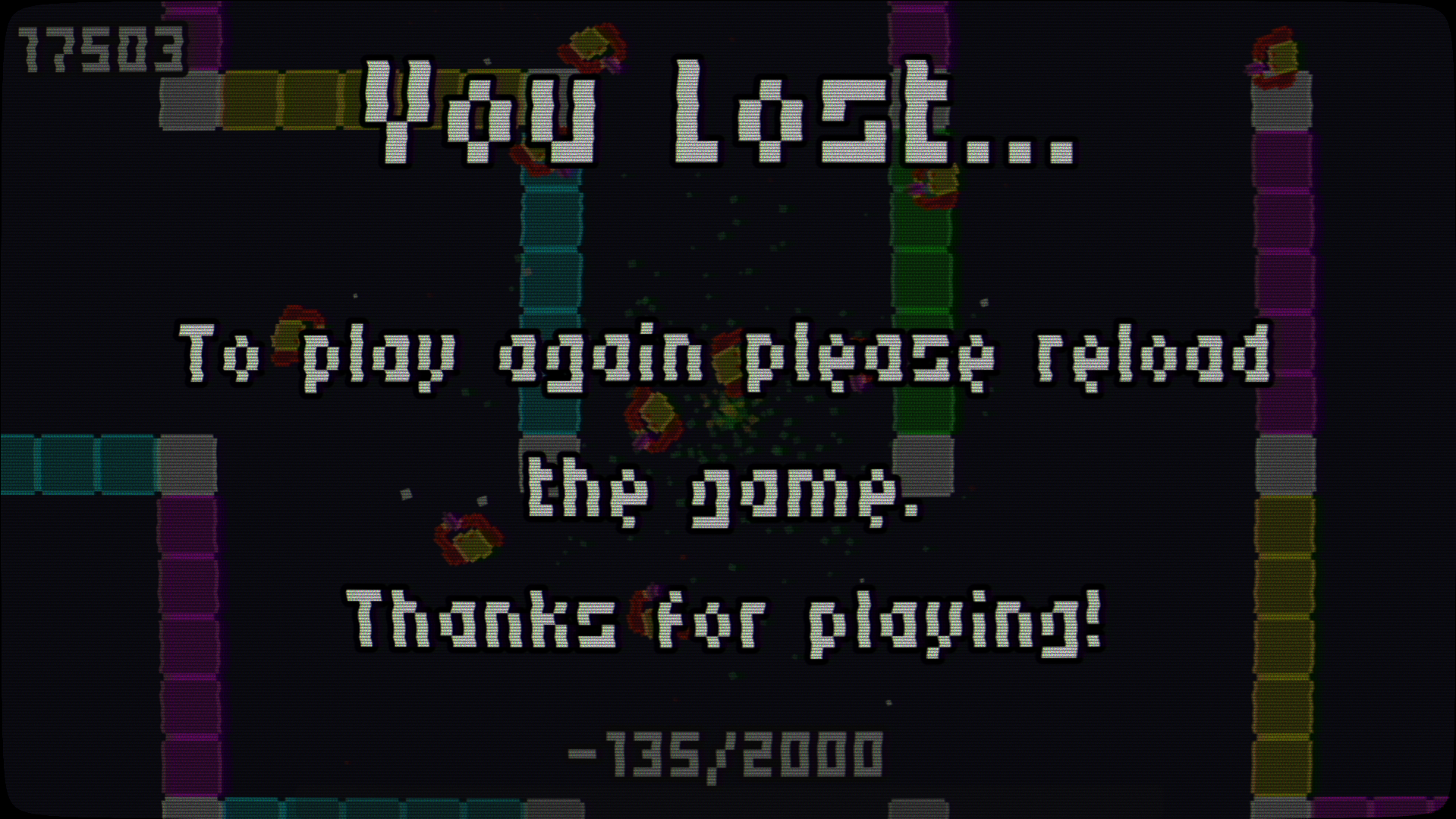 Thank you so much for playing and for your feedback :D. I'm glad you liked the game even considering the problems it have. I'm sorry about the snow, the screen is a big mess with all the snow flakes and pixels from the background's dithering, I totally understand and I'll try to fix that in a future update. And yeah... I was afraid that the game doesn't show clearly how it fits the theme, since the theme in my game would be more visual than based on mechanics, but I unfortunately couldn't apply it in time. In a future update (to be honest I don't know exactly when it will be), I'm planning to improve the game with the treatment it deserves.