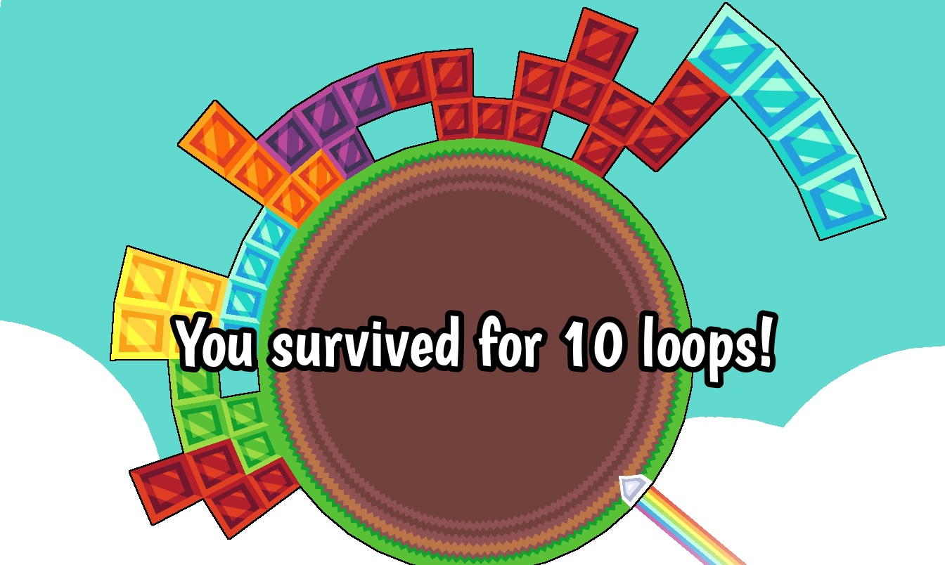 Very interesting concept. I had fun working out the game mechanics and slowly getting better. As it is a new kind of game mechanic, I think it should be a bit easier at the beginning. Maybe have only 1 color in the first level, so that players get used to the loop mechanic, and add color combinations only on higher difficulty levels.