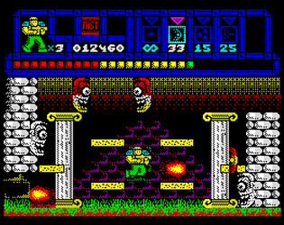 There was no memory left for scoring or other mechanics, although disk/DivMMC loading could allow these by ditching code for e.g. title screen once the game begins. I may work on an expanded DivMMC version in future, but no promises... and I'd be happy for it to become a community project to see how much further others can take it! 😁